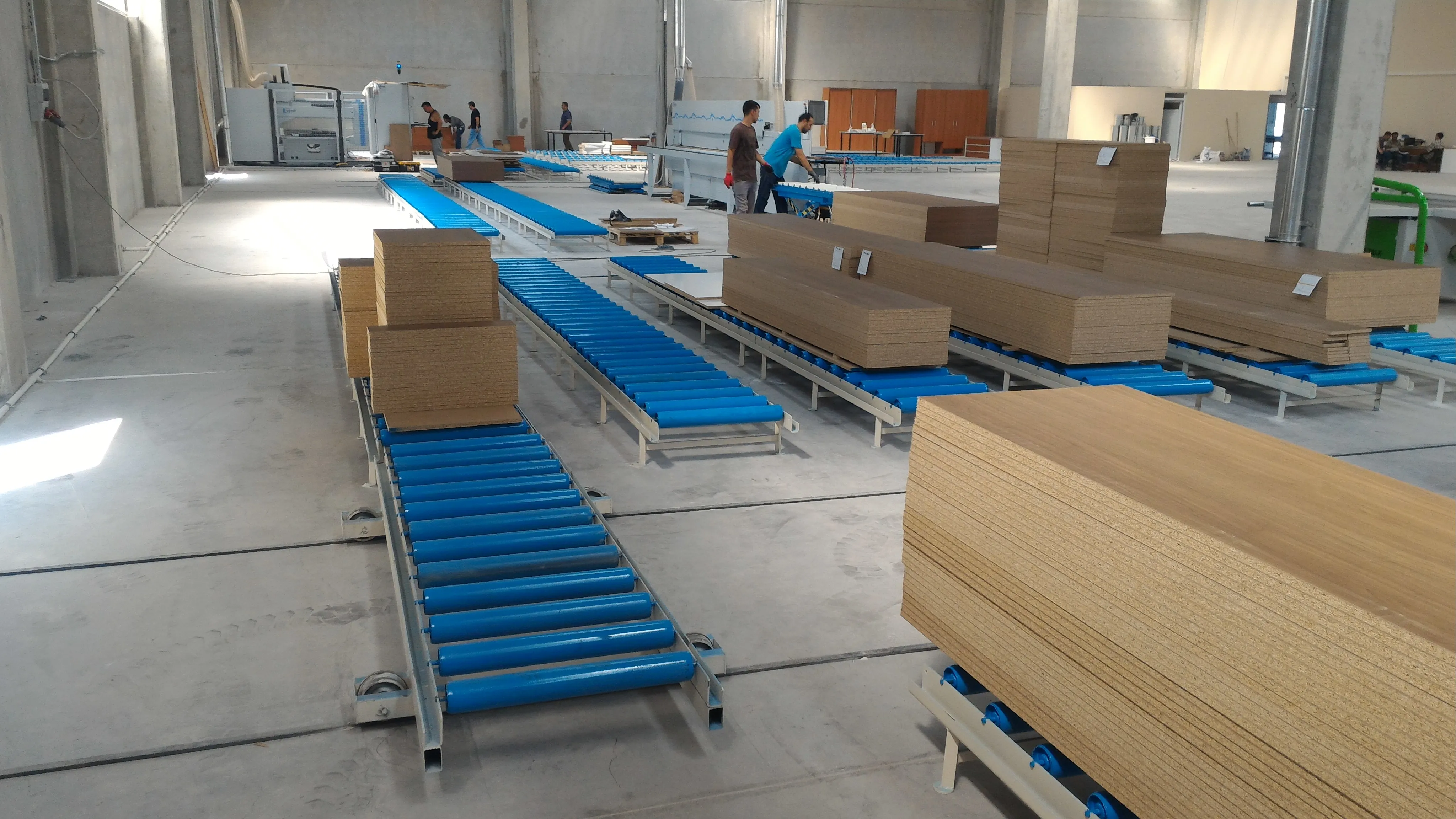 Mobilya fabrikalarına özel, yüksek kapasiteli modüler yer konveyörü imalatı. Panel taşıma, montaj hattı ve ebatlama besleme çözümleri Bornova Desan Makina'da.