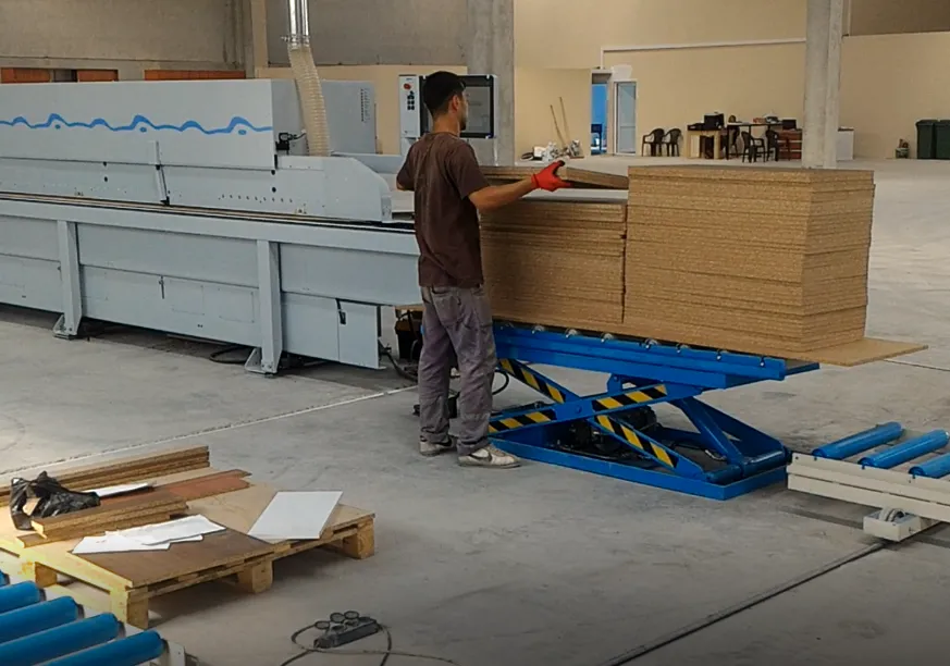 Hidrolik Besleme ve Yükleme Asansörleri: Ebatlama makinesi, kenar bantlama ve çoklu delik makineleri için otomatik seviye ayarlayan güvenli asansör sistemleri.