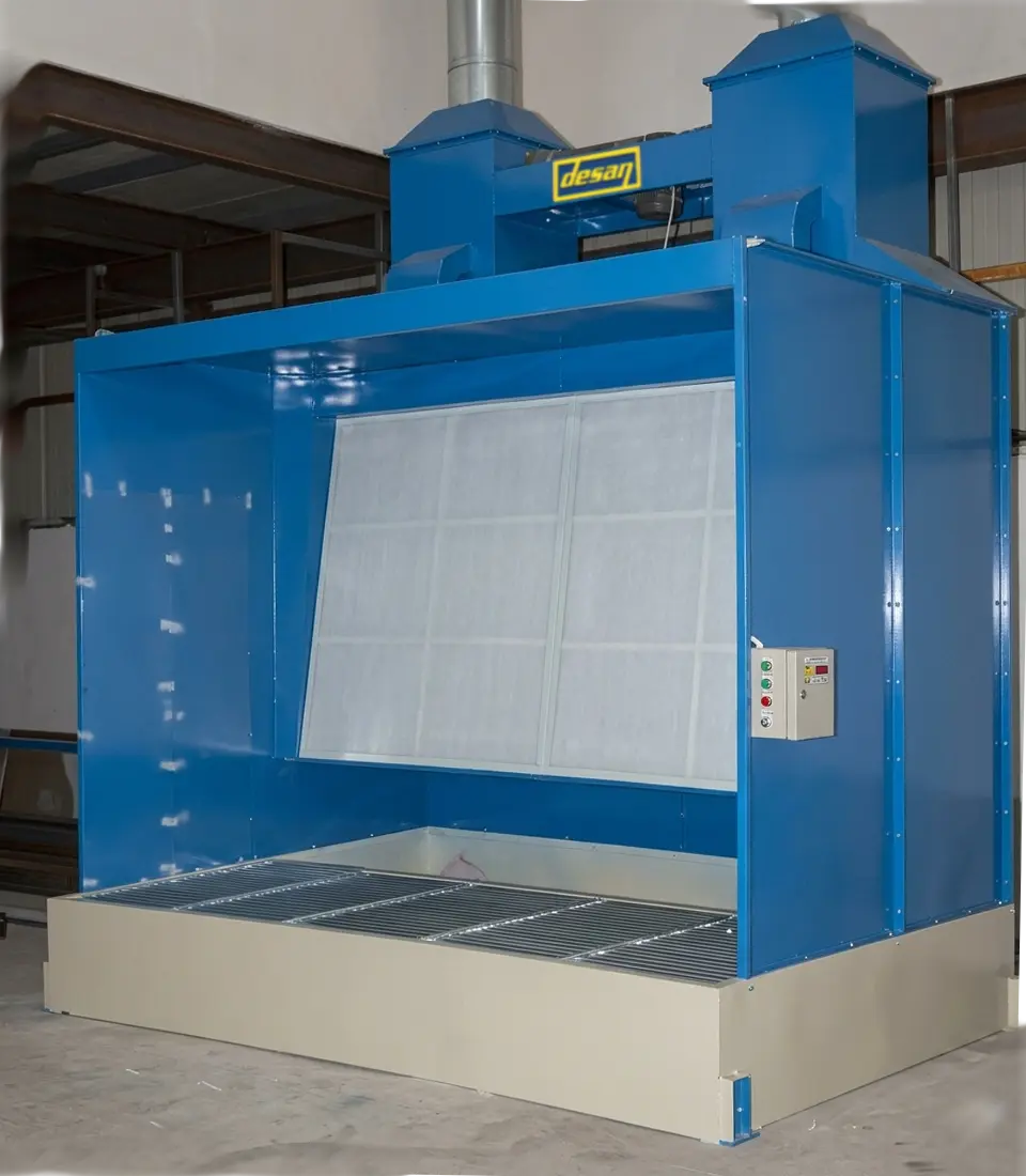 Hassas Akış Levhası: Kabinin ön yüzeyindeki paslanmaz çelik levhalar, suyun yüzey gerilimini bozmadan, en ufak bir boşluk (kuru nokta) bırakmadan aşağı süzülmesini sağlar. Bu, boya sisinin kaçabileceği hiçbir "açık kapı" bırakmaz.
