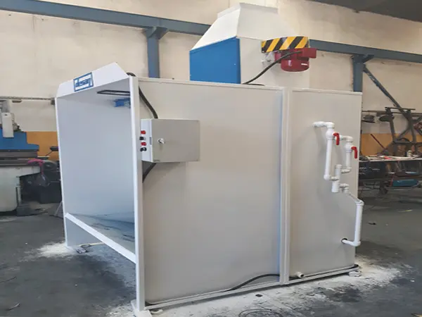 Türbülanslı Yıkama: Su perdesinden geçen hava, kabin arkasındaki özel yıkama odasına girer. Burada suyun hava ile şiddetli bir şekilde çarpıştığı (Vortex tipi) bir yıkama alanı bulunur. Bu aşamada havada kalan en küçük pigmentler bile suya hapsedilir.