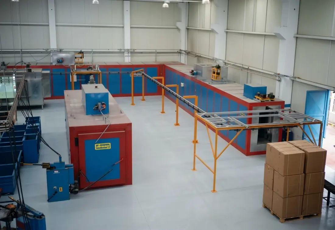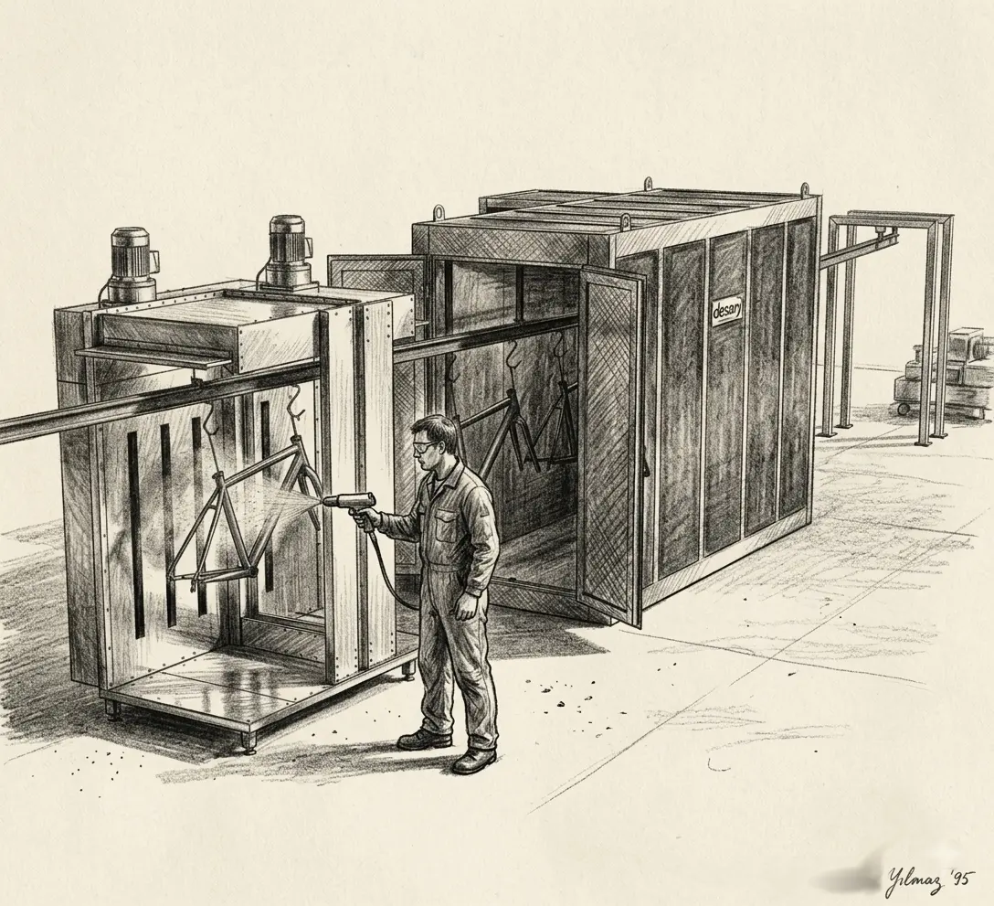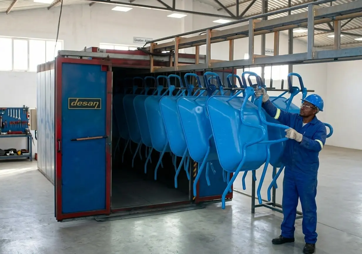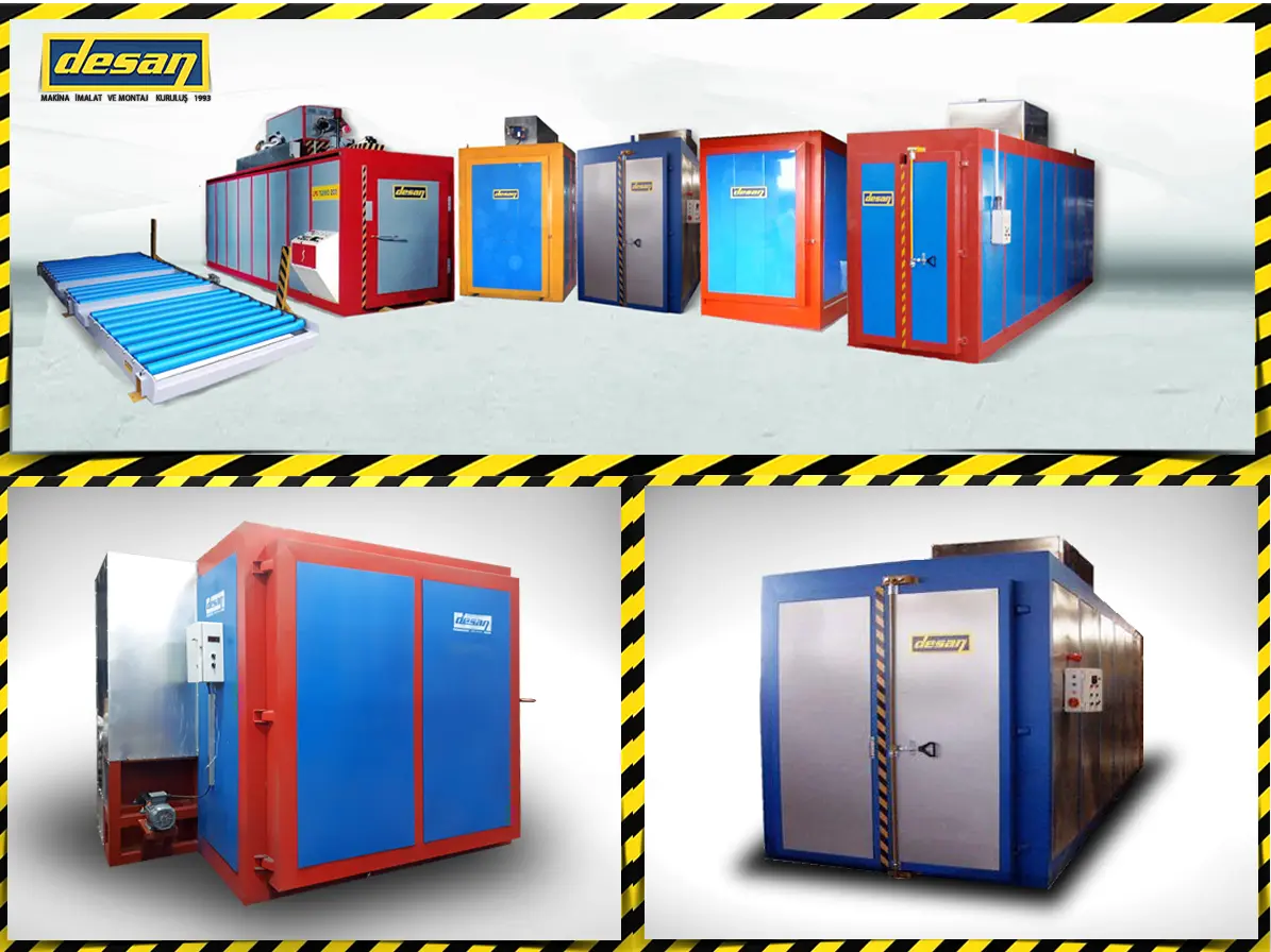 Elektrostatik toz boya uygulamasında, boyanın polimerize olması (yüzeye kimyasal olarak kenetlenmesi) için 180°C - 200°C sıcaklıkta, hatasız bir pişirme süreci gerekir. Desan Makina olarak, bu süreci en yüksek verimle yöneten profesyonel taşıma ve pişirme çözümleri sunuyoruz: