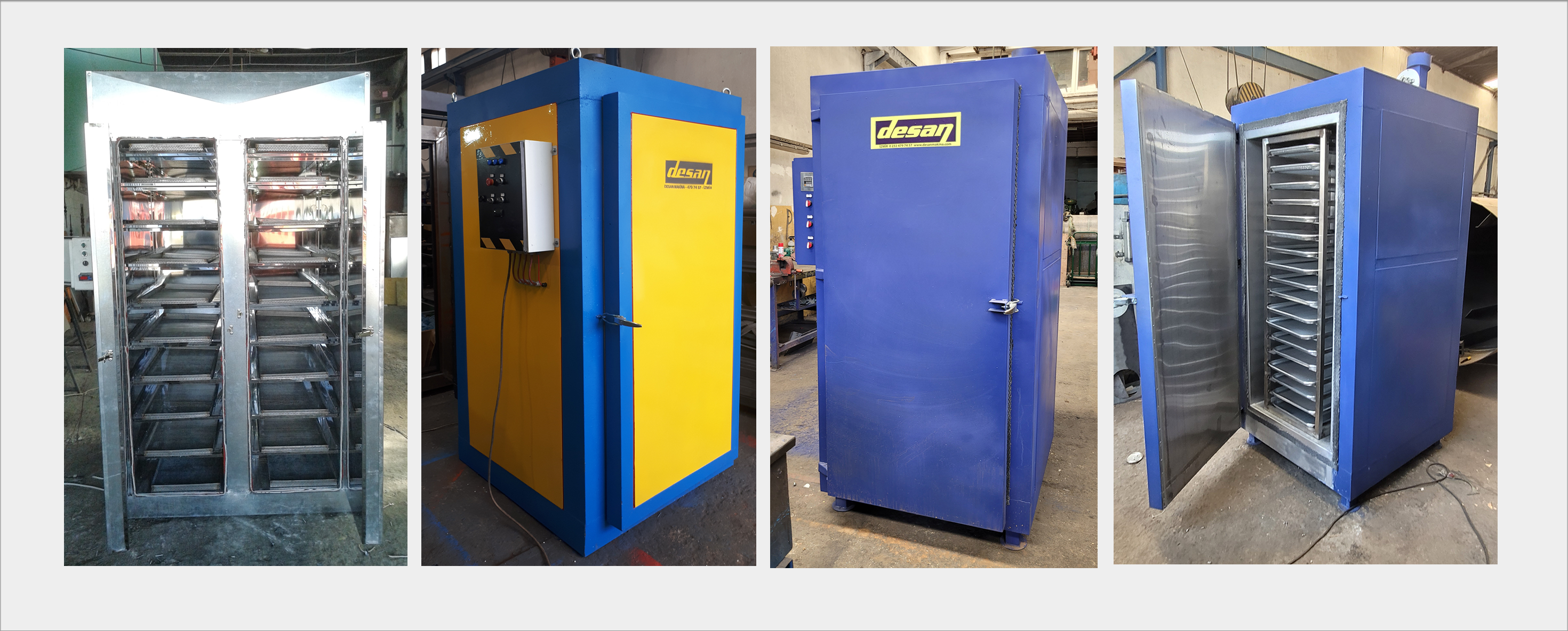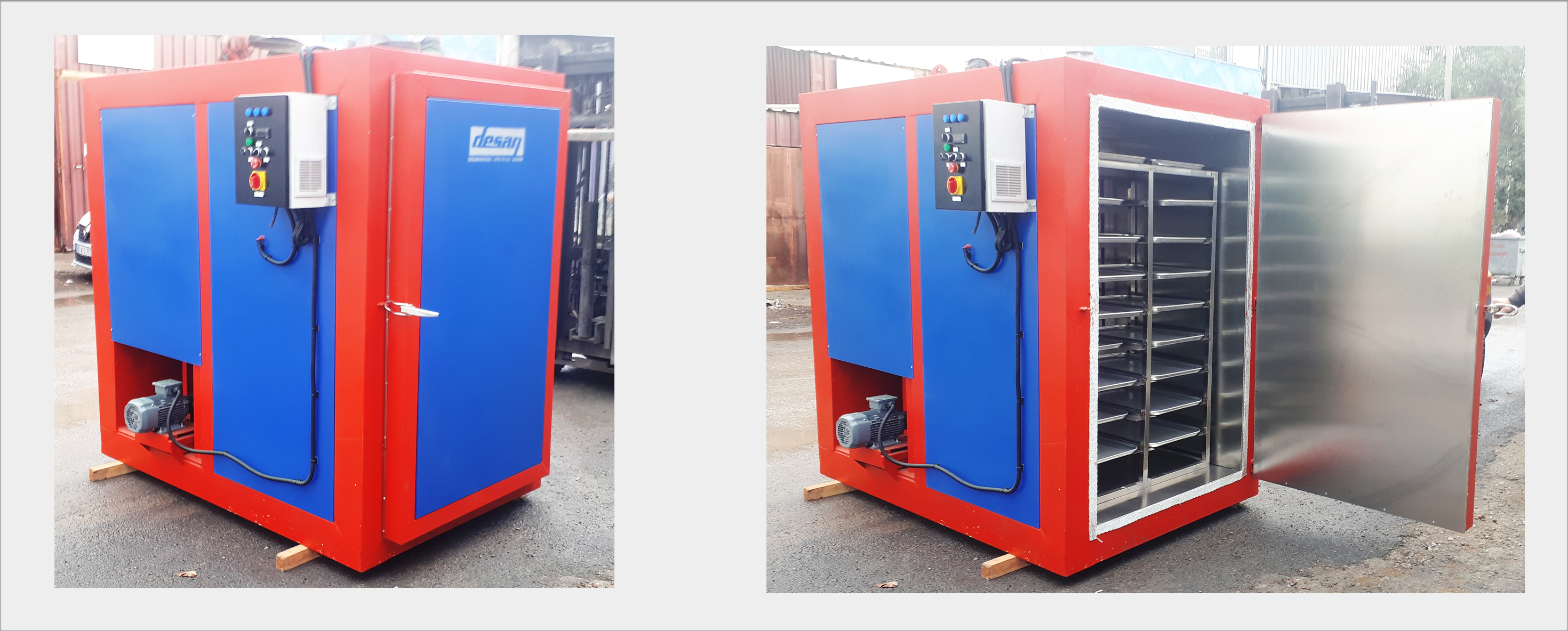 Tepsili kurutma sistemi düşük kapasiterekli zaman ayarları ve defroz çıkış kılapeleri isteye bağlı ayarlanabilmektedir. Kurutma Fırınları elektrikli, doğalgazlı ve buharlı çalışacak şekilde yapılabilmektedir. Tamamı paslanmaz çelik olarak imal edilmektedir. Dijital termostat vasıtasıyla ±0,4 oC hassasiyetle kontrol edilmektedir. Paslanmaz çelikten mamul tepsili arabaları vardır. eminde ve hastaneler için medik