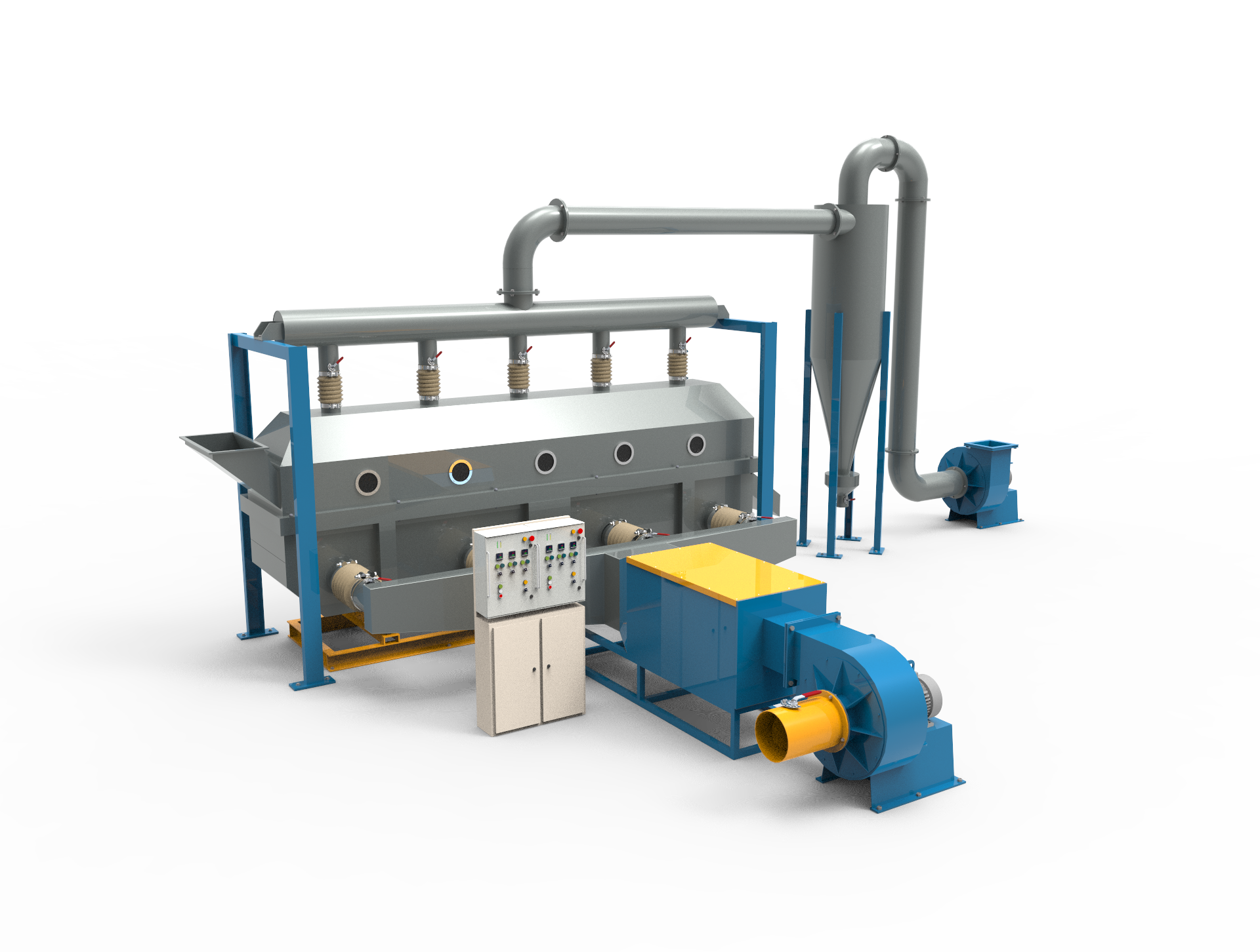 Akışkan yataklı kurutucu, nemli malzemelerin kurutulmasında kullanılan endüstriyel bir sistemdir. Bu tür kurutucular, özel olarak tasarlanmış fanlar aracılığıyla havanın basınçlandırılması ile katı parçacıkların akışkanlaştırılmasını sağlar ve istenen kurutma oranlarını elde etmek için tek bir adımda veya çok kademeli işlemlerle çalışır.